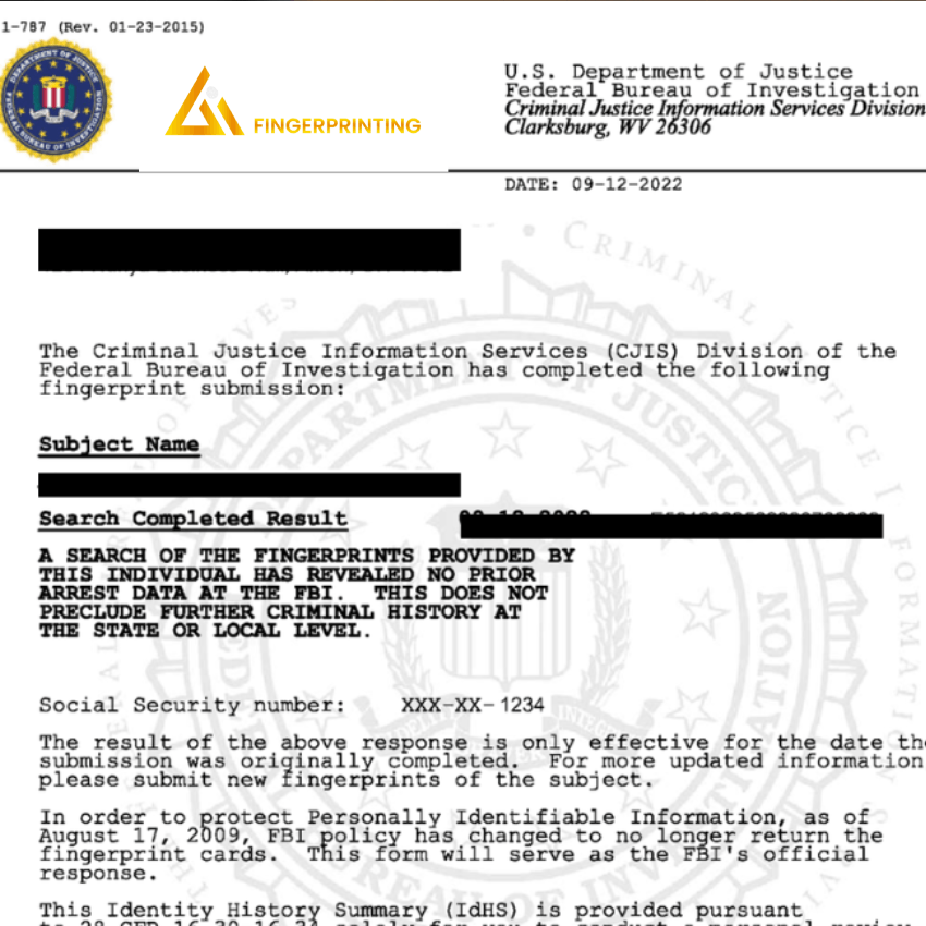 To get a tamper-proof copy of your own FBI Identity History Summary, you must request it directly through the FBI or a reputable private screening provider (FBI Channeler). AI Fingerprinting provides the compliant fingerprint submission required for this official report.